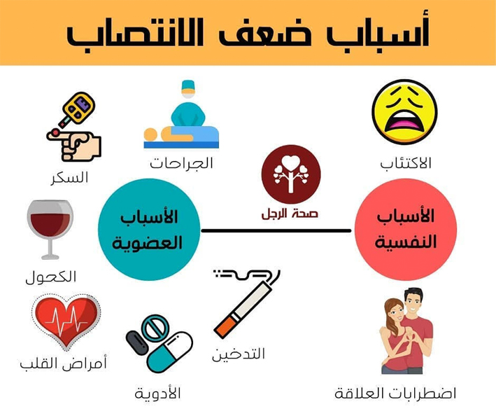 أي خلل في هذه المراحل — سواء في الإشارات العصبية أو تدفق الدم أو الهرمونات — يمكن أن يؤدي إلى ضعف الانتصاب.