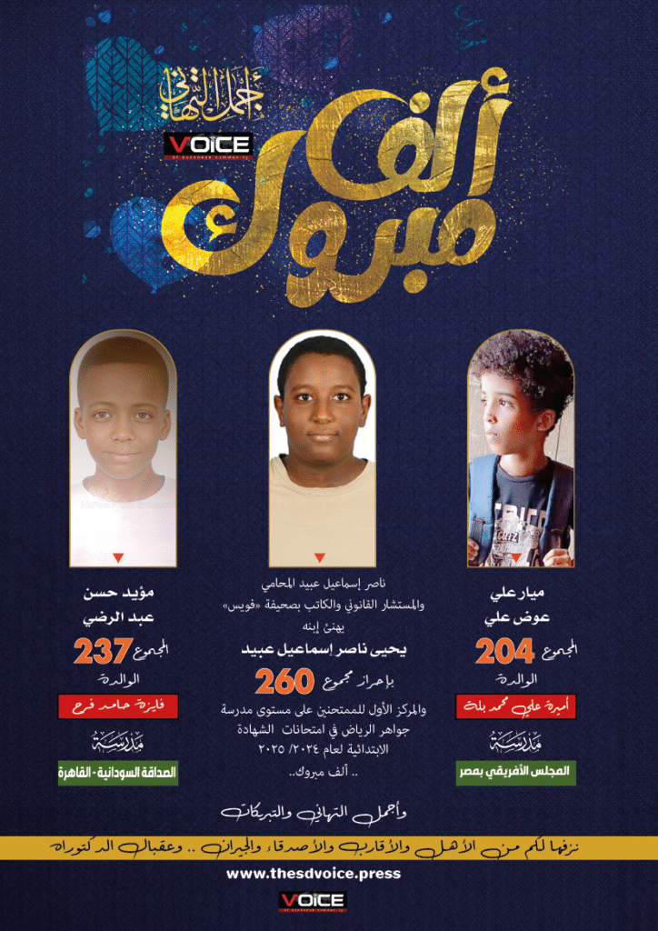 تعليم الف مبروك للناجحين في امتحانات الشهادة السودانية الإبتدائية المؤجلة للعام ٢٠٢٥/٢٠٢٤ Admin 10 نوفمبر، 2025 157 شارك الفرحة Continue Reading Previous السودان الجريحNext «الرومان» يخسرون نقطتين في الحصاحيصا.. والتحكيم يلغي هدفاً مشروعاً المزيد من القصص تعليم مؤسسة المعارج القرانية الخاصة تتكفل بـ10مقاعد لأبناء الشهداء Admin 1 نوفمبر، 2025 83 السودان تعليم الف مبروك للناجحين في امتحانات الشهادة السودانية الثانوية المؤجلة للعام ٢٠٢٤ (المجموعة الثالثة) Admin 29 أكتوبر، 2025 159 السودان تعليم الف مبروك للناجحين في امتحانات الشهادة السودانية الثانوية المؤجلة للعام ٢٠٢٤ (المجموعة الثانية) Admin 27 أكتوبر، 2025 199 السودان تعليم الف مبروك للناجحين في امتحانات الشهادة السودانية الثانوية المؤجلة للعام ٢٠٢٤ Admin 23 أكتوبر، 2025 255 تعليم في يوم المعلم العالمي… نقف لك إجلالاً Admin 4 أكتوبر، 2025 293 تعليم برنامج ipSchools.. ثورة في الإدارة المدرسية الرقمية Admin 20 سبتمبر، 2025 1473 اترك تعليقاً إلغاء الردلن يتم نشر عنوان بريدك الإلكتروني. الحقول الإلزامية مشار إليها بـ *التعليق * الاسم * البريد الإلكتروني * الموقع الإلكتروني احفظ اسمي، بريدي الإلكتروني، والموقع الإلكتروني في هذا المتصفح لاستخدامها المرة المقبلة في تعليقي.