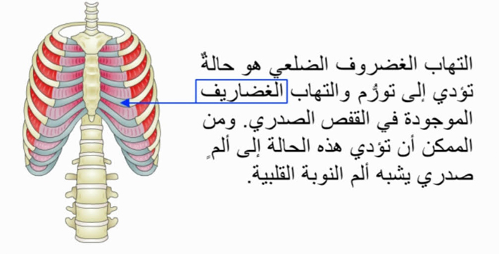 عندما فحص الطبيب صدره وضغط على منطقة المفصل الضلعي الرابع الأيسر، شعر عمر بألم شديد في تلك النقطة.