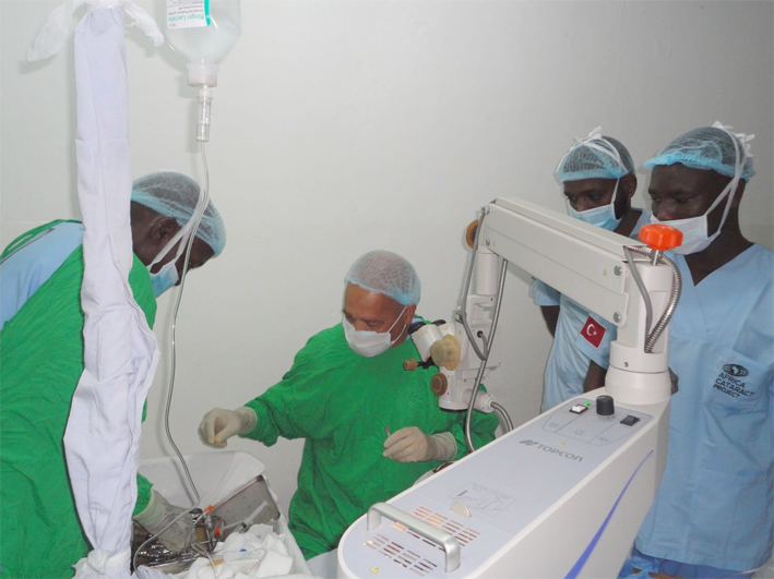 أما في مجال جراحات العيون، تجري عشرات العمليات مع كل قافلة واشهرها هي عمليات ازالة عتمة عدسة العين (الموية البيضا) فقد تم بحمد الله خلال قافلة الجنينة إنقاذ 7 أطفال بإجراء عمليات المياه البيضاء الخلقية (Congenital Cataract) وتدريب الأخصائي المحلي. وهؤلاء الأطفال كانوا مهددين بفقد نهائي البصر اذا لم تجري العمليات قبل سن اربعة سنوات.